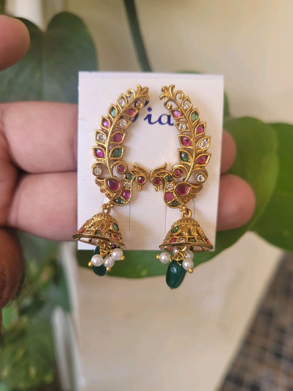 Beautiful Butta Design Earrings With Green and Red Stone Work 1pc