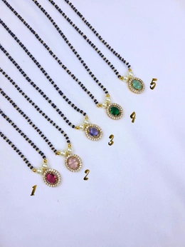Black Beads Chain With CZ Locket : 1Pc