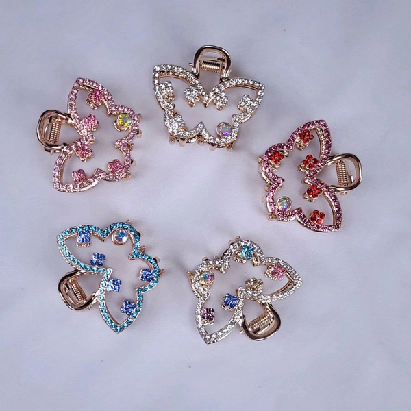 Butterfly Design Metal Clip With Stone Work 1Pc
