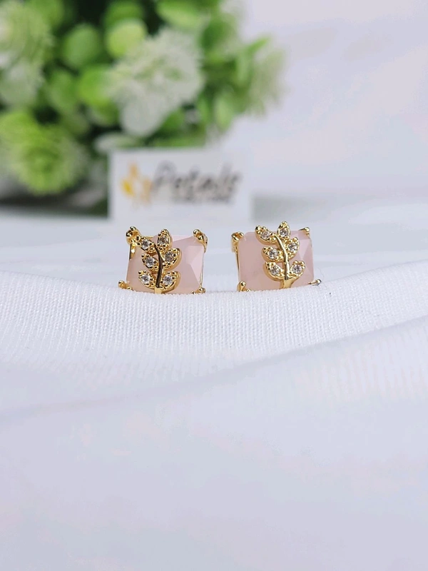 Designer Earstuds Leaf Pattren on Stone - Pink