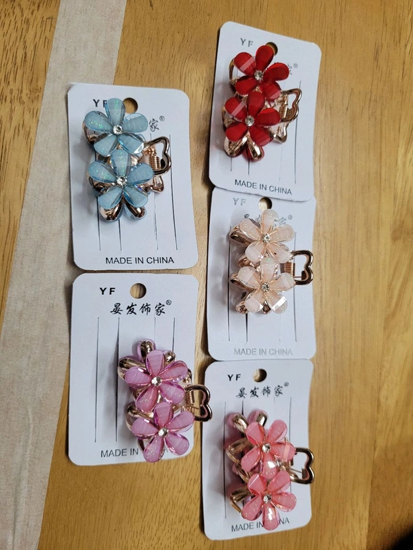 Double Flower Metal Clip With Glossy Leaves 1pc