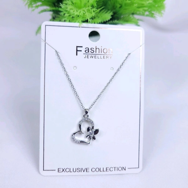 High Quality Silver Polish Chain With Heart and Butterfly Design Locket