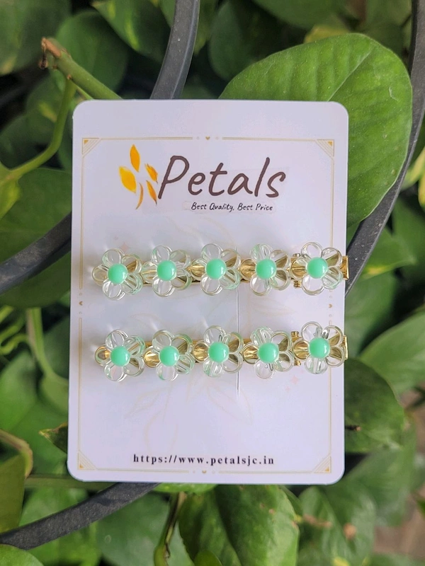 Korean Side Clips 1 Set (2Pcs) - Green Flowers - PKC001