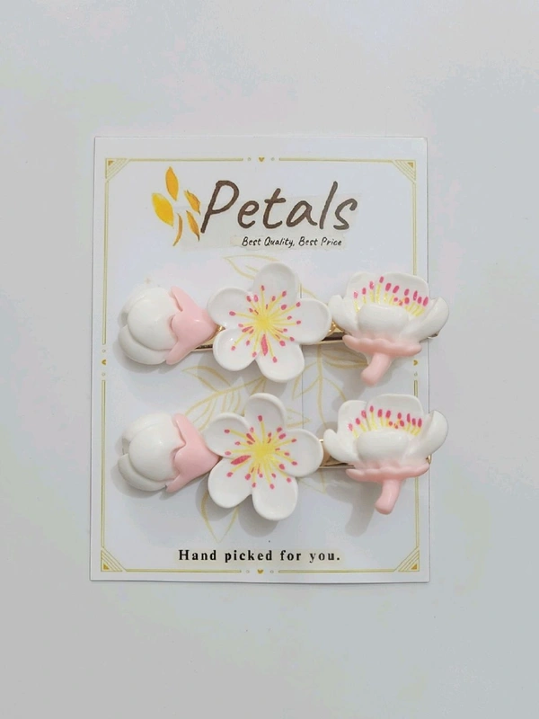 Korean Side Clips White Flower Design 1 Set (2Pcs) - PKC033