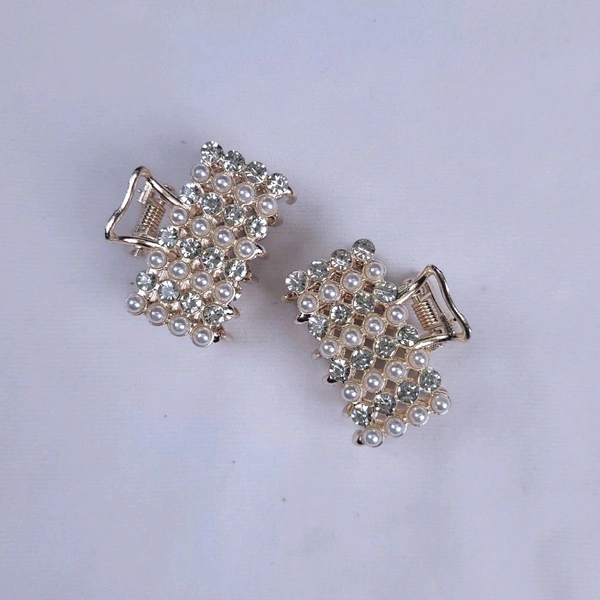 Metal Clip Swith Stone And Pearl Work 1pc