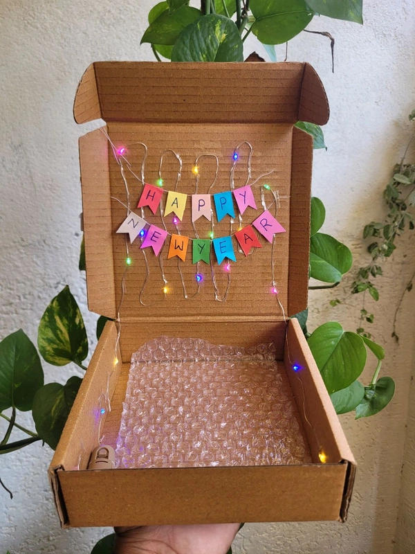 New Year Gift Box With Lighting Box and Banner.