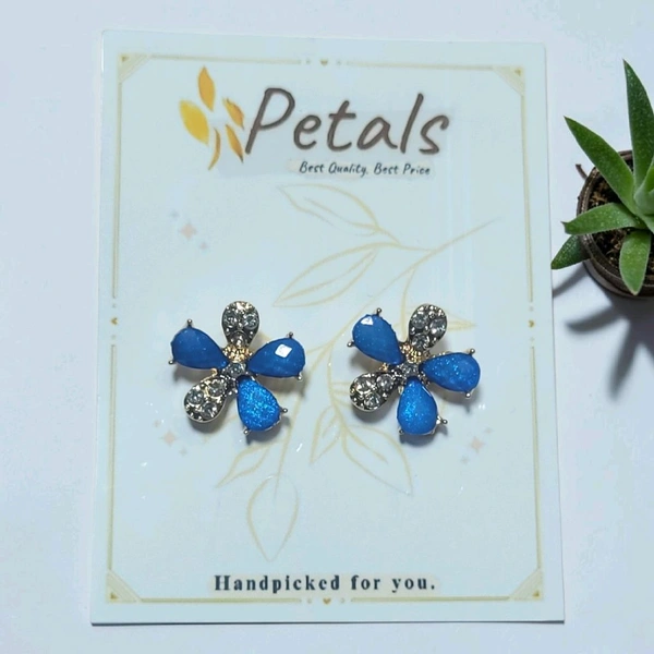 Premium Quality Glossy Flower With Stone Work Design Ear Studs - PES004