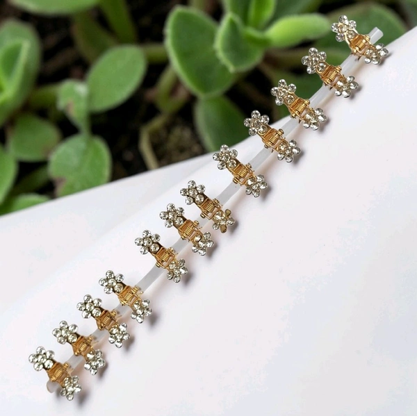 White Color Mini Hair Cluther 1 Strip (12 Pcs) Gold - PMC100
